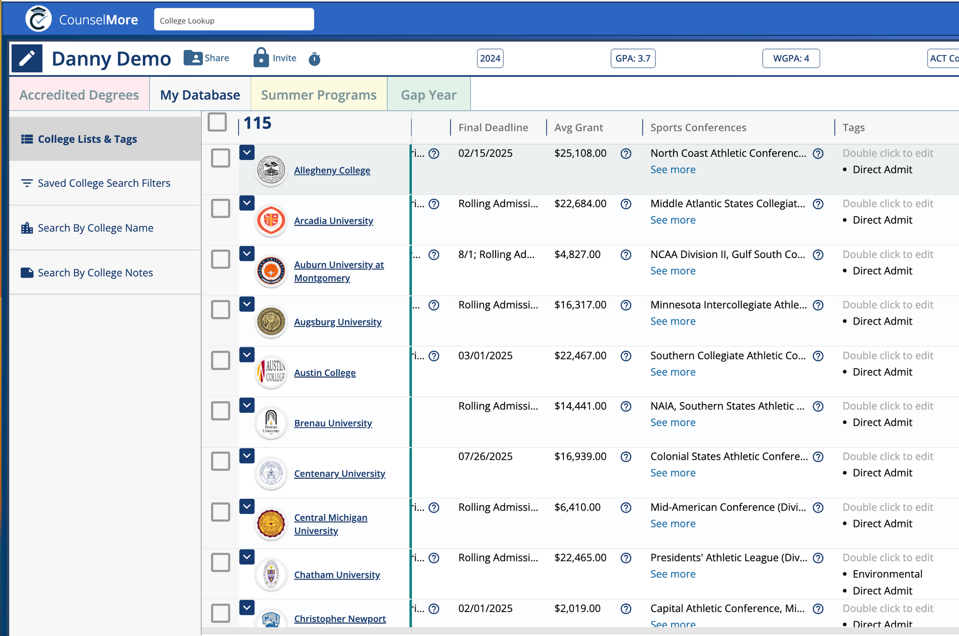 For educational consultants and college planning specialists, keeping up with these changes can be challenging. That’s where CounselMore comes in. CounselMore offers a variety of tools to help you navigate the ever-changing college admissions process, and now includes a specific focus on direct admissions as it relates to building a balanced college list.