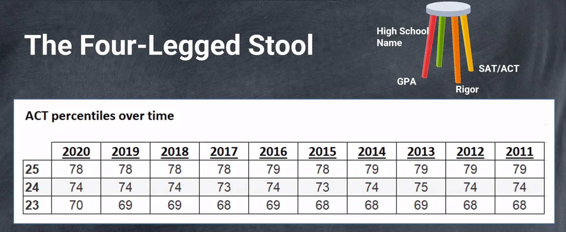 The student's intended major (engineering, nursing, and business programs often place more weight on test scores).
