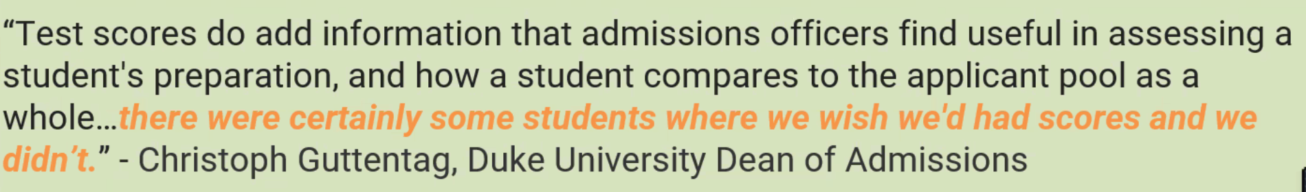 While many schools are test optional, submitting strong test scores provides a significant advantage in the admissions process.