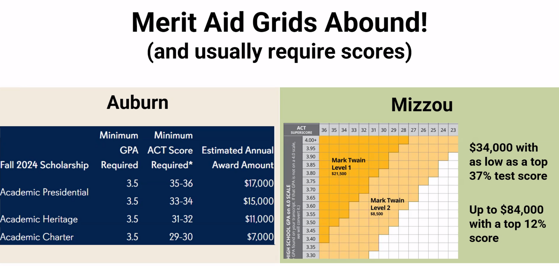 Even if test scores are optional for admissions, they may be required for merit-based scholarships.