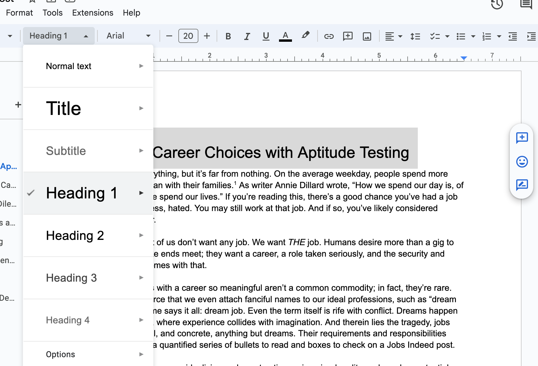 You can change the headings of your text in whatever word processor you use. Typically, a drop-down menu will give you the heading options. Here are the different headings you should use while blogging.