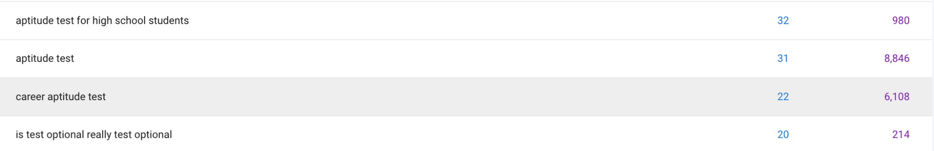 A few people came to my website searching for a particular phrase. That phrase was “aptitude test for high school students.” That search phrase resulted in 32 visits to my website. So, I set out to write a series around that search phrase. One of those articles turned out to be exactly what a lot of parents were searching for (see image below).